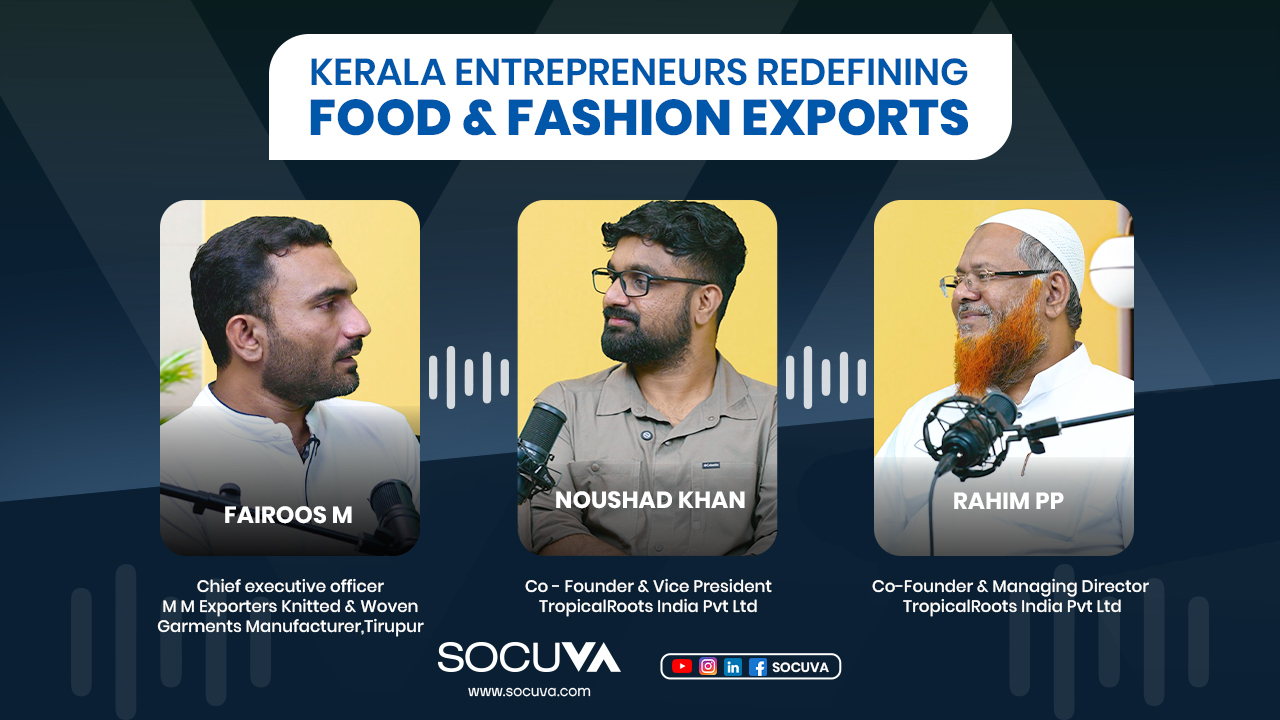 Kerala Entrepreneurs Redefining Food & Fashion Exports. In this episode of Socuva Talks, we sit down with three incredible business leaders from Kerala who are making a global impact.